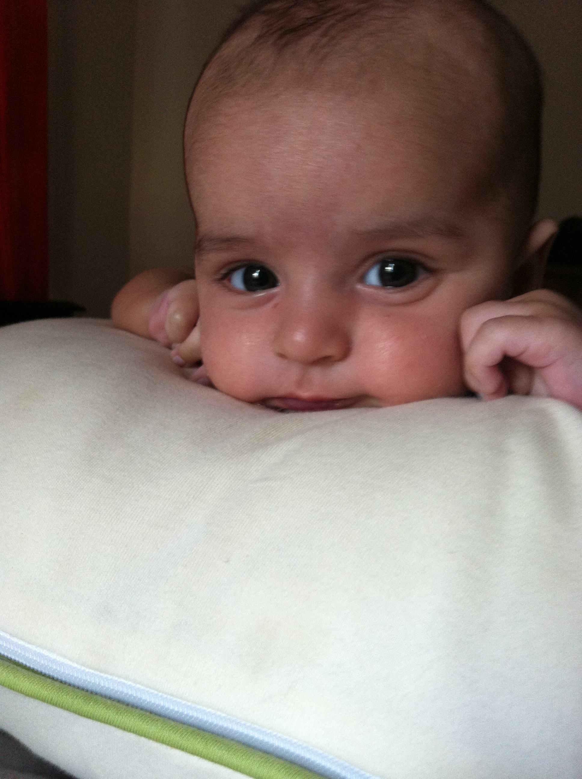 I can see how you’ve grown and developed since we first beheld you, and what I feel is both surprise and not surprise at all. Of course that is the shape of your smile. Of course that is the way your fingers splay and clench, the way your eyes fixate on your fist. Of course that will be your personality, as it emerges. You are a hallway of veils, each pulled back at the moments of your choosing, and the silhouetted shapes we could almost perceive behind each of them reveal themselves to be what we hoped they would be and so much better than we could have imagined.