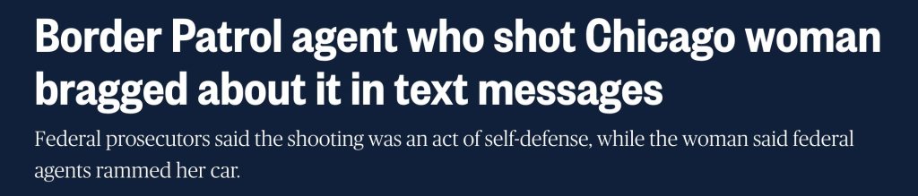 Recent reports indicate that “Operation Midway Blitz” may be winding down in the near future. Since it’s after Chicago’s first genuine cold snap and snowfall, it’s reasonable to assume that they’re unwilling to cope with the weather and that it means there are fewer landscapers and caretakers walking through public parks for them to terrorize and detain in miserable warehouse conditions.